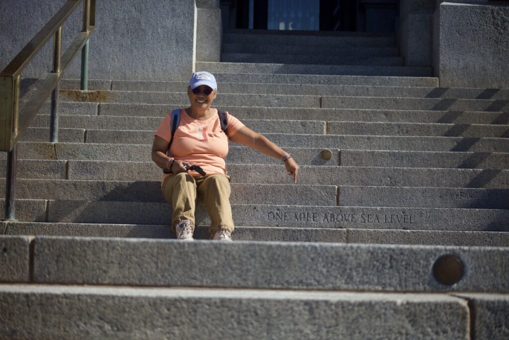 Là c’est le capitole de Denver avec une inscription que nous montre Ded qui indique que nous sommes à 1 mile d’altitude, soit 1 609m.